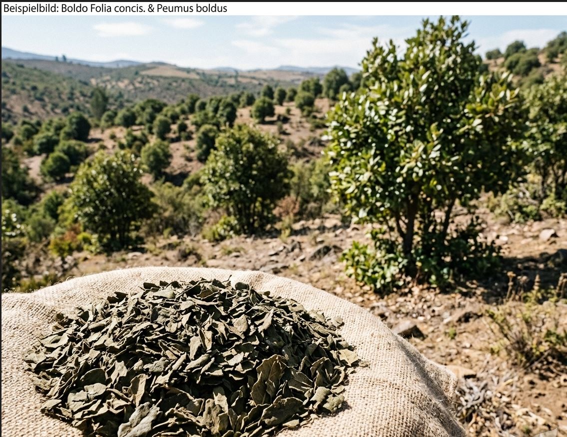 Unsere Boldoblätter geschnitten (Boldo Folia concis) werden aus sorgfältig ausgewählten Blättern des Boldostrauchs (Peumus boldus) gewonnen, schonend getrocknet und gleichmäßig geschnitten. Durch die behutsame Verarbeitung bleibt der charakteristisch würzig-herbe und leicht aromatische Duft der Blätter erhalten.